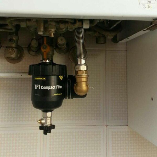 Filtrul Fernox TF1 Compact poate fi montat direct pe conducta de retur. Unitatea poate fi instalată fie pe conducte orizontale, fie pe conducte verticale, şi a fost proiectată special pentru a putea fi montată la acelaşi nivel cu un perete. Filtrul Fernox TF1 Compact poate fi instalat în oricare dintre cele 24 de orientări diferite permise de mecanismul său unic de admisie/evacuare, pentru a permite curgerea debitului în orice direcţie atunci când acesta parcurge unitatea.